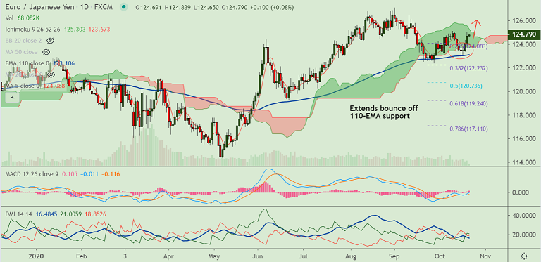 EUR/JPY was trading 0.08% higher on the day at 124.79 at around 06:30 GMT, outlook bullish.