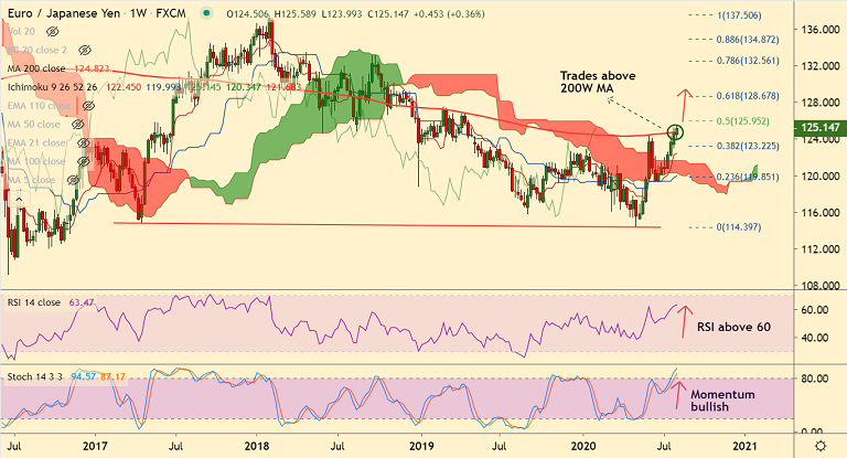 The pair is trading above 200W MA at 124.82 and weekly close above 200W MA will support further upside.