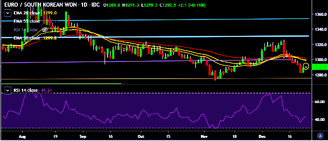 - EUR/KRW is currently trading around 1,290 mark.