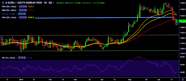 We prefer to take short position on EUR/KRW only below 1,308, stop loss 1,322 and target of 1,302/1,294.