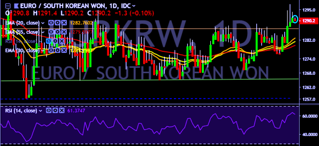 - EUR/KRW is currently trading around 1,290 mark.