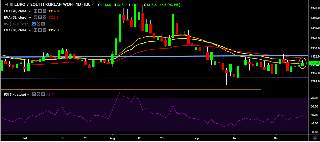 - EUR/KRW is currently trading around 1,316 mark.