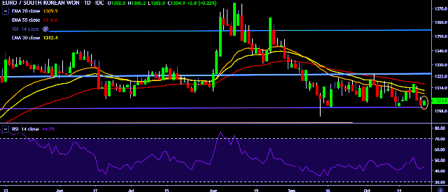 We prefer to take short position on EUR/KRW only below 1,302, stop loss at 1,311 and target of 1,294/1,287.
