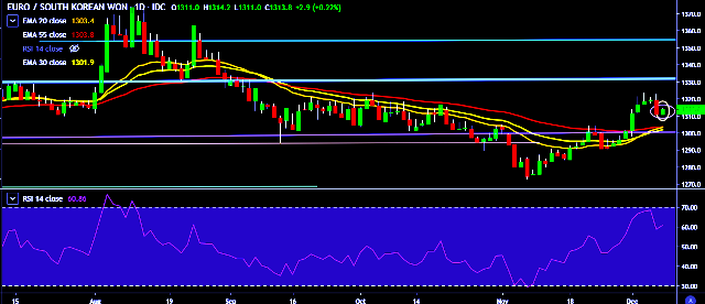 - EUR/KRW is currently trading around 1,313 mark.