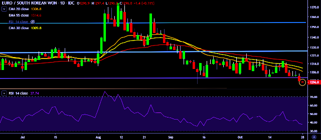 - EUR/KRW is currently trading around 1,295 mark.