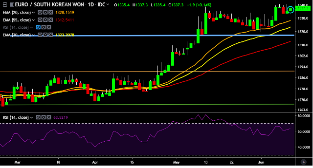 - EUR/KRW is currently trading around 1,337 mark.