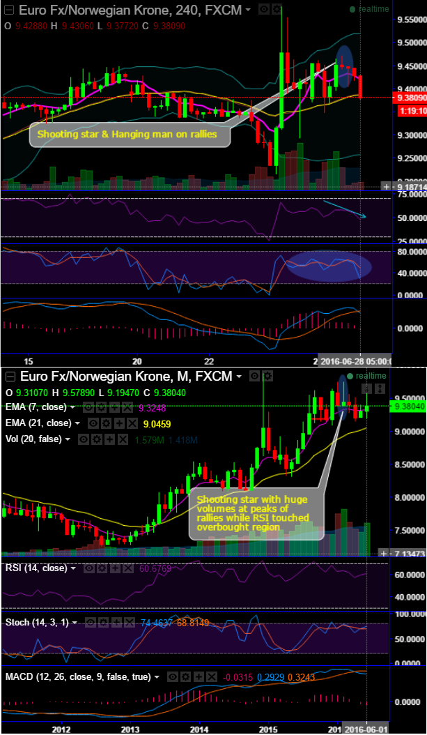 On intraday charts, the pair has formed back to back shooting star and hanging man patterns at 9.4498 and 9.4458 levels respectively to evidence more bearish collapse in intraday trend.