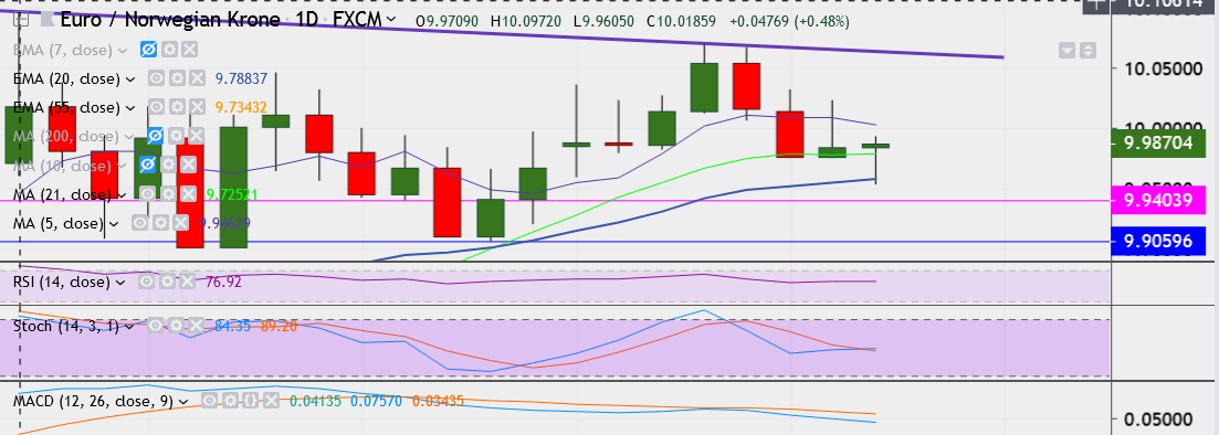 - Any violation above 10.0972 could see a reversal in trend.