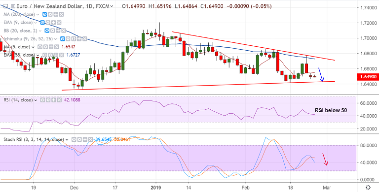 - EUR/NZD is trading in a narrow range with session high at 1.6519 and low at 1.6486.