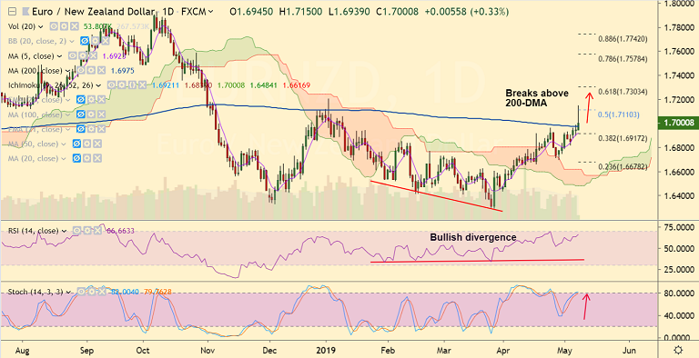 - Close above 200-DMA will see further gains in the pair. Scope for test of 0.7201 (Jan 3rd high)