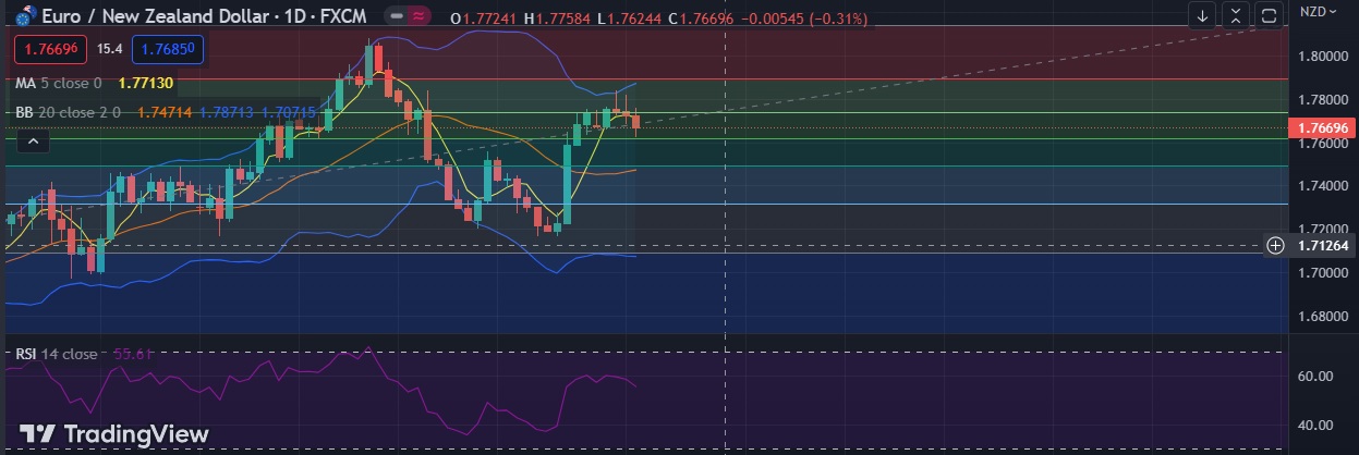 • Support is seen at 1.7618 (50% fib ) and break below could take the pair towards 1.7491 (61.8% fib).