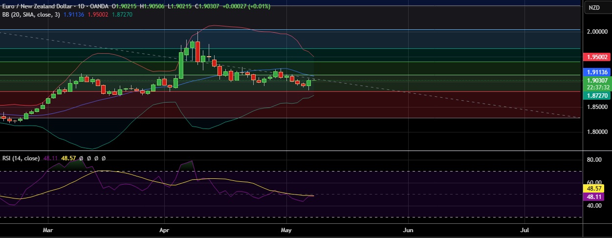 • Strong support is seen at 1.8817 (23.6%fib ) and break below could take the pair towards 1.8720(Lower BB).