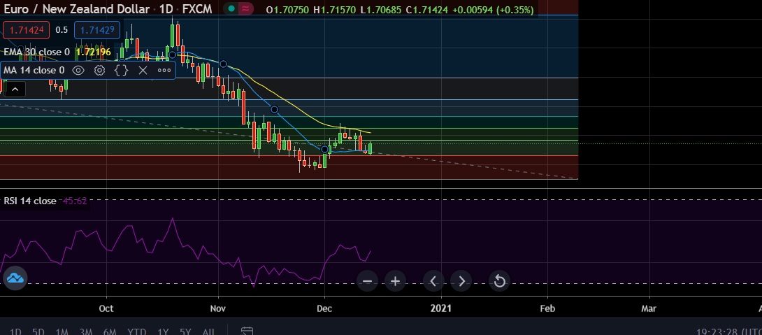 • On the downside, support is seen at 1.7108 (14 DMA ) and break below could take the pair towards 1.7056 (23.6%fib).
