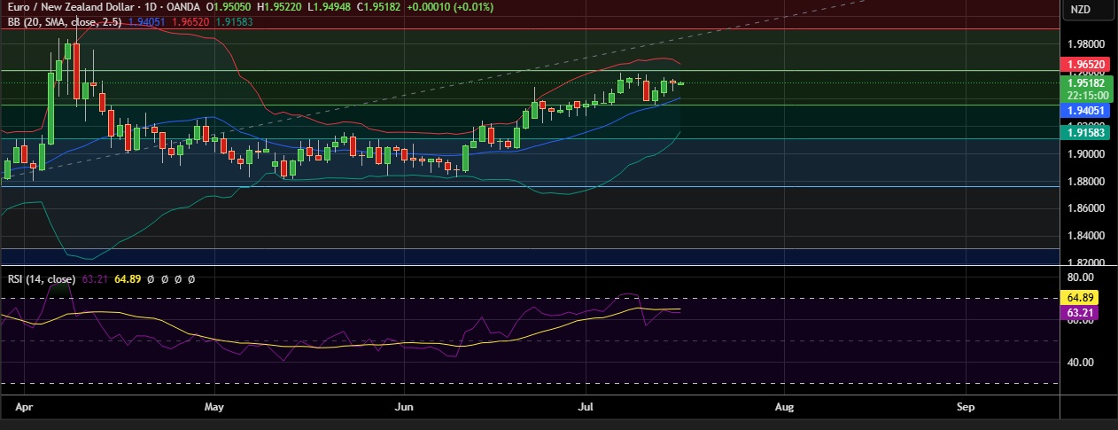 • EUR/NZD edged higher but gains were limited as market awaited fresh cues from ongoing EU–U.S. trade talks.