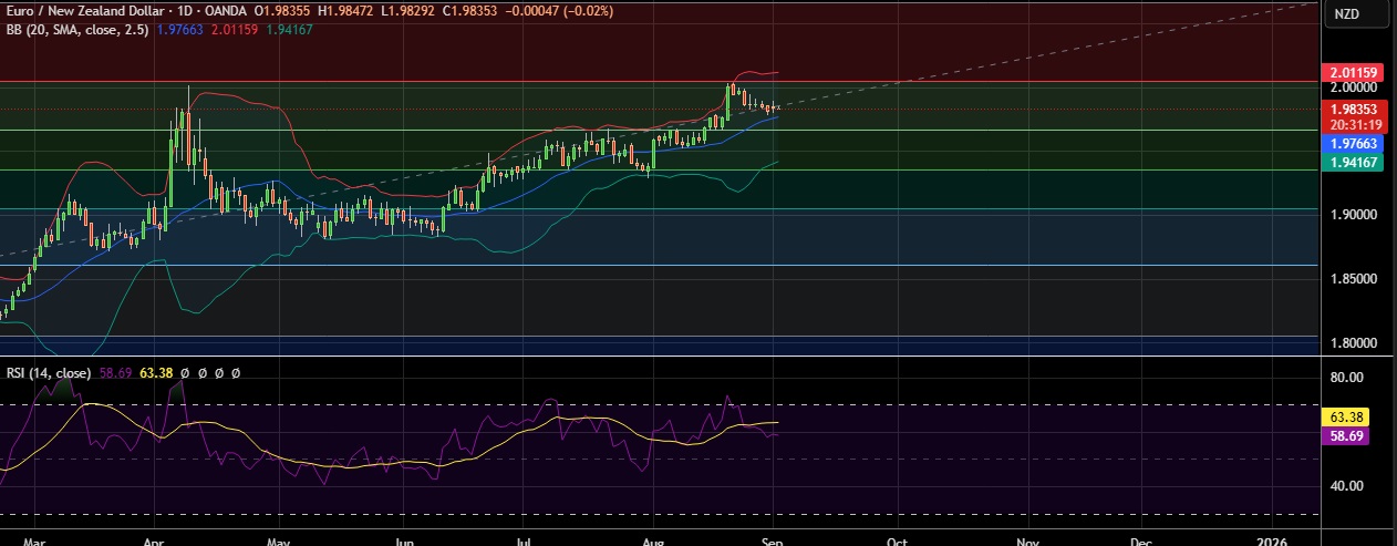 • EUR/NZD edged lower on Monday as investors are adopting a cautious stance as they await signals from upcoming data releases.