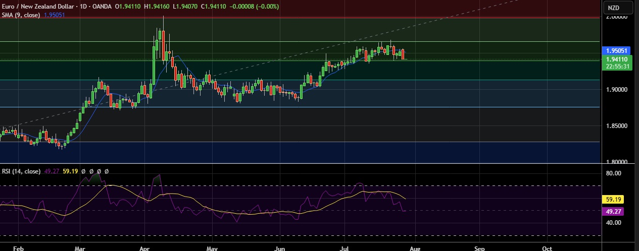• Strong support is seen at 1.9393(50% fib) and break below could take the pair towards 1.9269 (June 30th low).