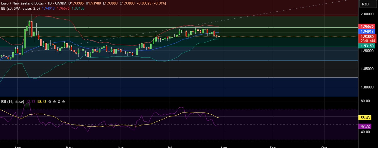 • EUR/NZD edged lower on Tuesday as the euro came under pressure from rising bearish sentiment following the EU-U.S. trade framework agreed over the weekend.