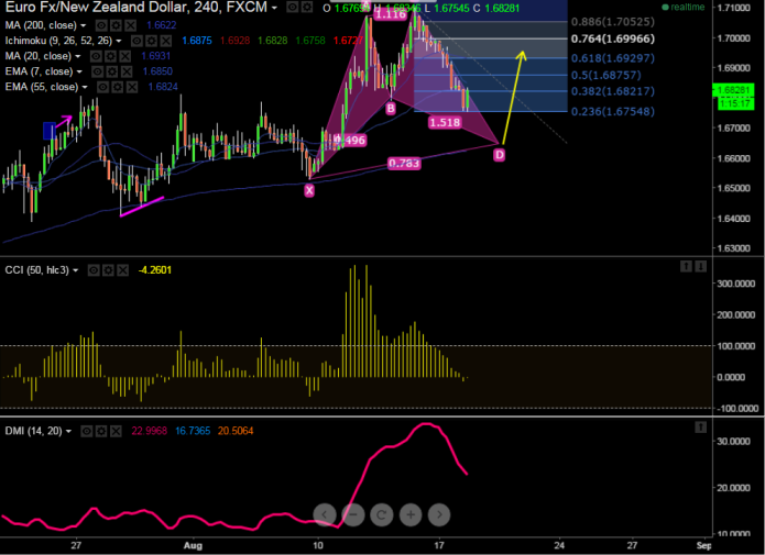 - EUR/NZD has made a low of 1.6750 and recovered from that level. Overall trend is bullish as long as support 1.6650 holds.