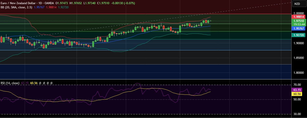 • Immediate resistance is located at 1.9875(Higher BB), any close above will push the pair towards 1.9982(Higher BB)