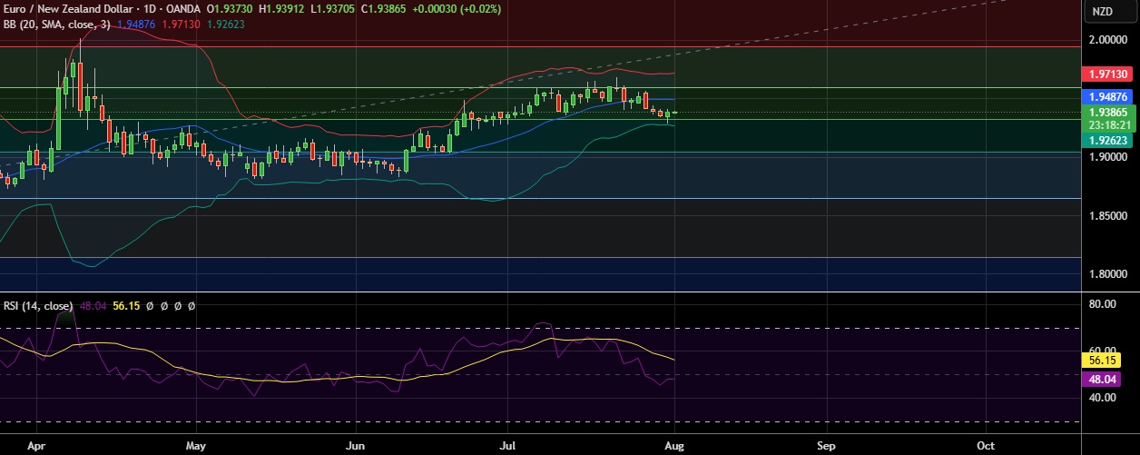 • Support is seen at 1.9314(50% fib) and break below could take the pair towards 1.9260 (Lower BB )