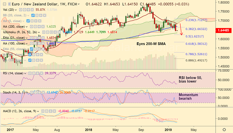 - EUR/NZD trades marginally lower on the day at 1.6440 at 0640 GMT.
