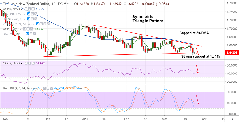 - The pair is trading in a ' Symmetric Triangle' pattern and upside remains capped at 50-DMA.