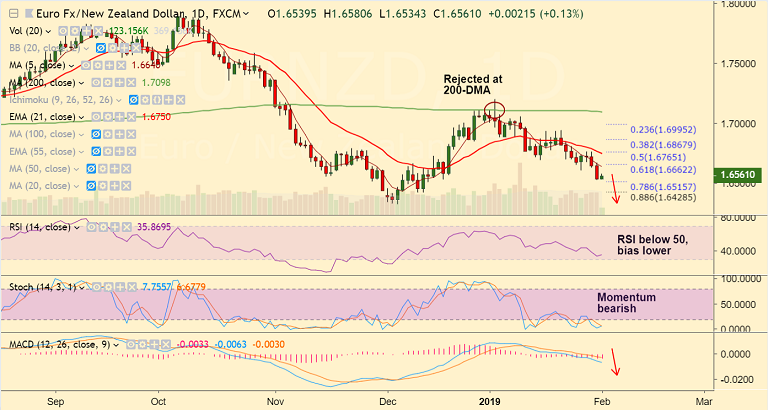 - The pair is trading with a bearish bias on the intraday charts, scope for weakness.