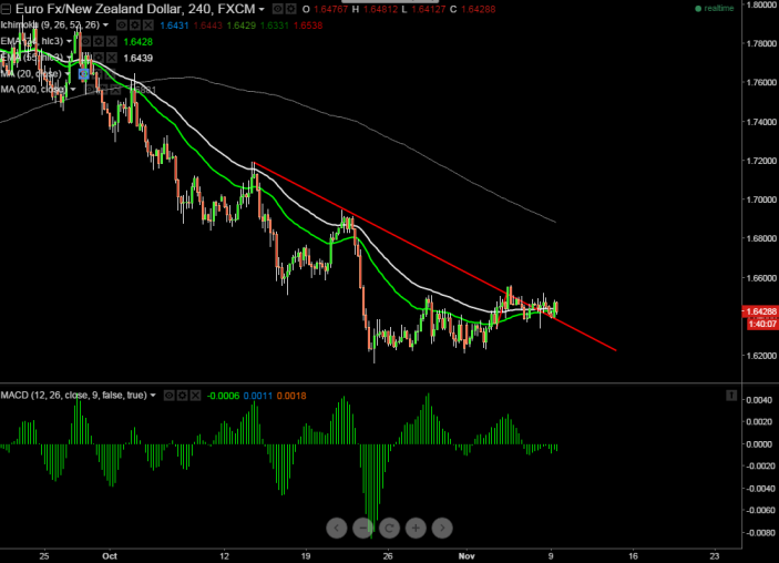 EUR/NZD has made a low of 1.6340 and recovered from that level. It has broken short term trend line resistance around 1.6400 (trend line joining 1.7189 and 1.6586) and break above confirms short term bullishness, a jump till 1.6520/1.6560 is possible.