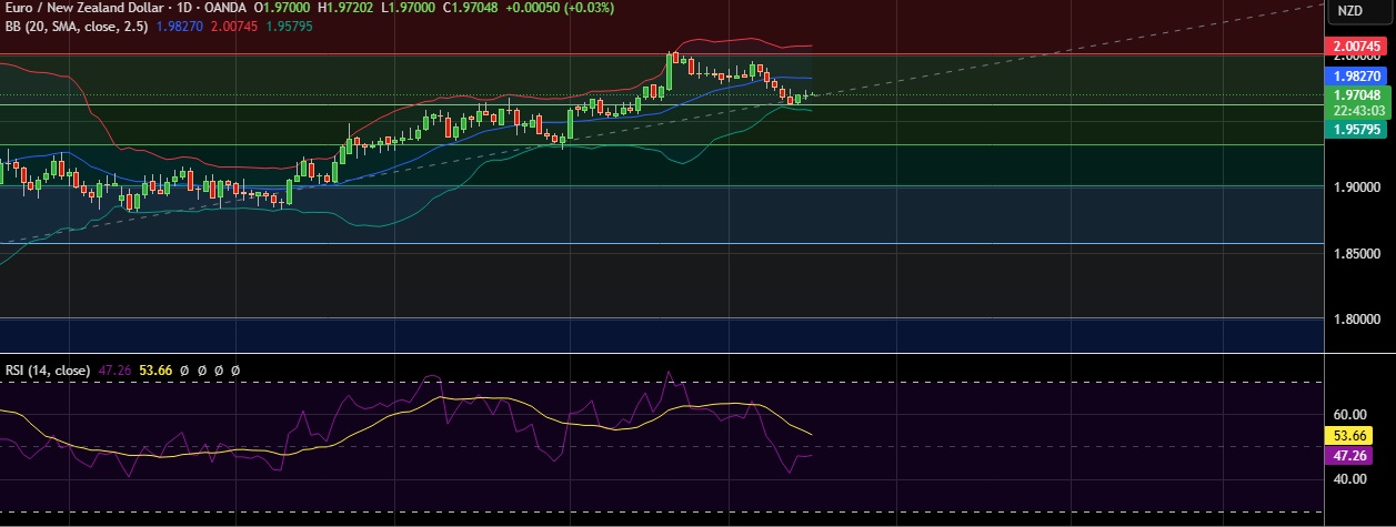 • Support is seen at 1.9629(38.2% fib) and break below could take the pair towards 1.9587(Lower BB).
