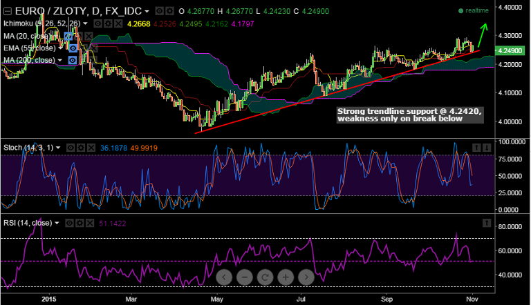 - EUR/PLN has strong trendline support at 4.2420, pair has taken support and edged higher, weakness only below 4.2420