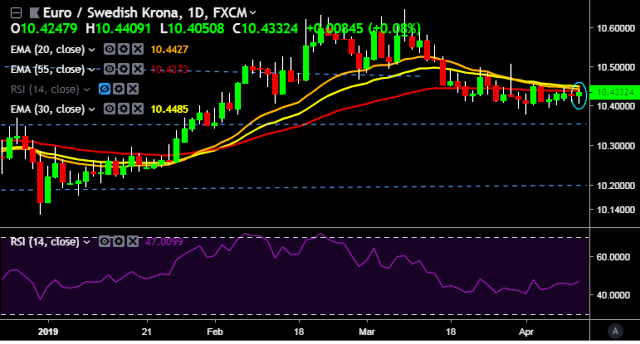 - EUR/SEK is currently trading around 10.4304 levels.