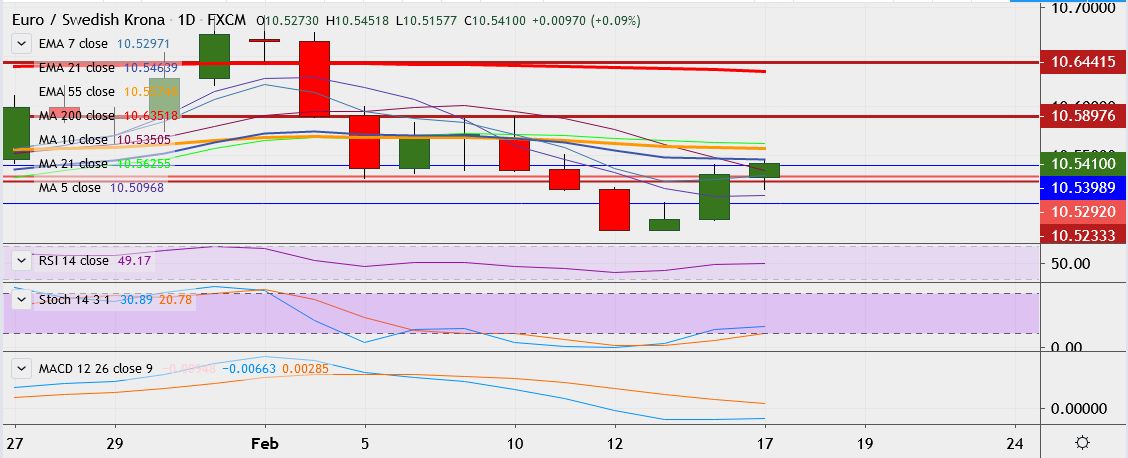 - On the lower side, support is seen at 10.5085 (5-DMA), break below could take it till 10.5005.