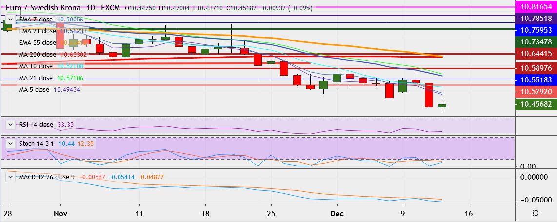 - On the lower side, support is seen at 10.4273, break below could take it till 10.4076.