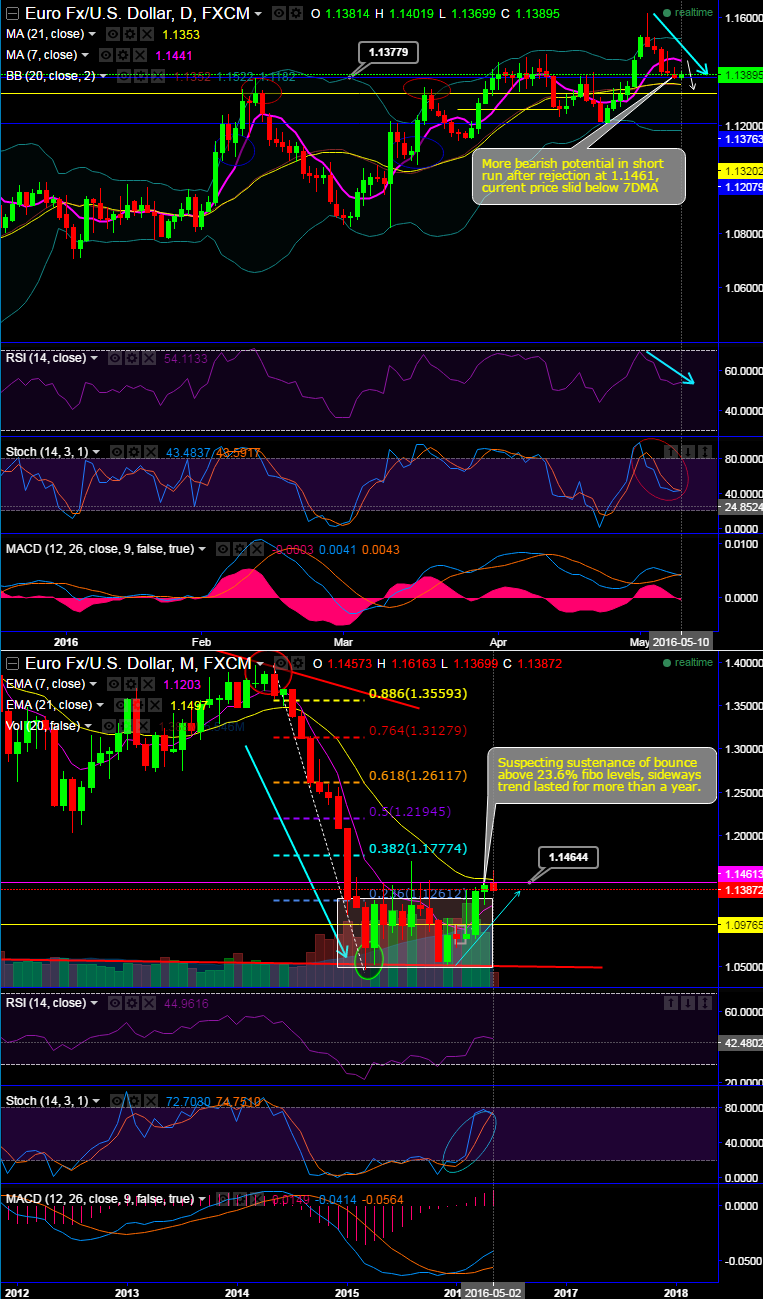 It is currently hanging around supports at 1.1376 levels with leading oscillators to converge the current price dips. Upon the break out below this support would certainly bring in bearish environment again to evidence minimum of 25-30 pips intraday targets.