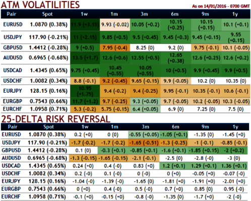 As you can observe from the table showing implied volatilities of ATM contracts edging higher which is highest among G10 currency space (EURUSD of 1W-1M expiries show 11.9% and 9.93%).