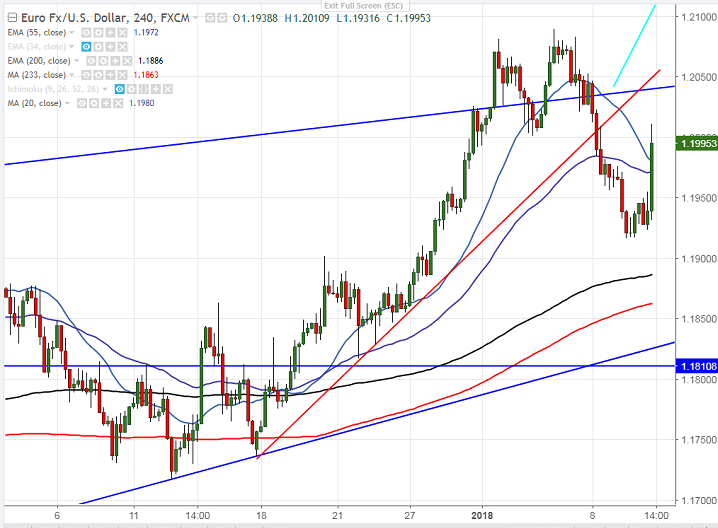- Technically, near term is around 1.1905 (20- day MA) and any break below will drag the pair down till 1.1854 (61.8% fibo)/1.1800.Minor weakness can be seen only below 1.1800.