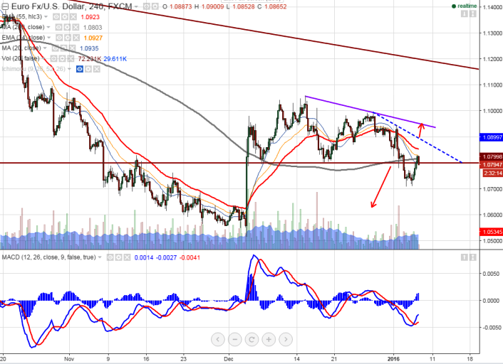 - Short term trend is still bearish as long as resistance 1.08550 holds. Any break above 1.08550 will take the pair to 1.08850/1.0905.
