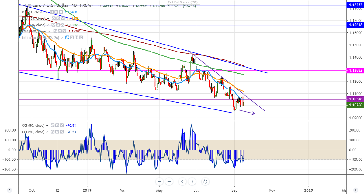 EURUSD ha lost sharply after hitting a high of 1.1100 level after a sharp jump from the low of 1.09270 after ECB monetary policy. Markets are eagerly waiting for Fed monetary policy tomorrow. The expectations of 25 bps rate cut have trimmed from 92% to 66% a week ago. German ZEW sentiment index came at -22.5 in Sep up from -44.1 compared to the forecast of -38. It hits a low of 1.09930 and is currently trading around 1.10262.