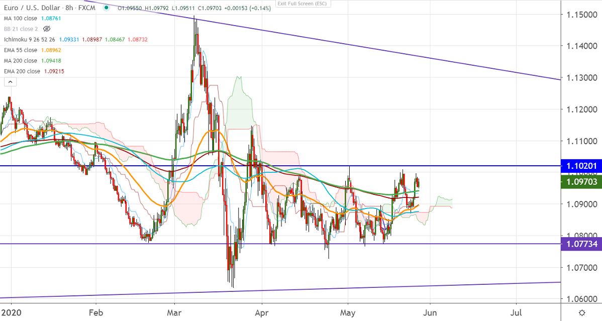 EURUSD recovered more than 100 pips from a low of 1.08700 on broad-based US dollar selling. The easing of lockdown and optimism in coronavirus vaccine is supporting Euro. But renewed tensions in Hong Kong slightly increasing Safe-haven demand. It hits high of 1.09958 and is currently trading around 1.09701.