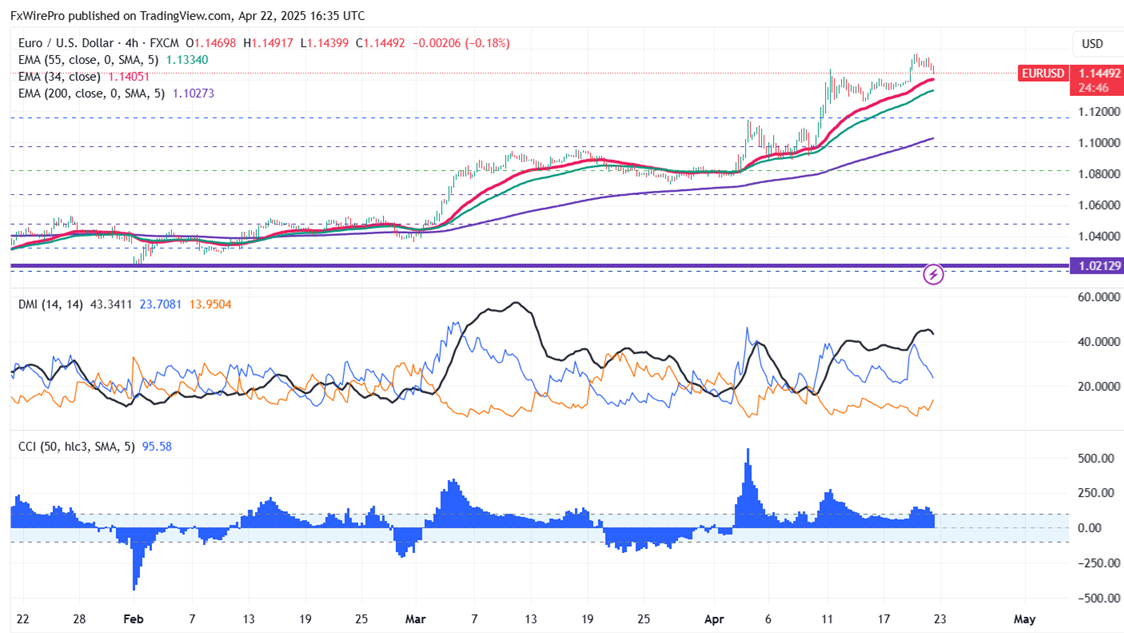 EUR/USD pared some of its gains due tp profit booking. It hits a intraday low of 1.1455 and currently trading around 1.14736.