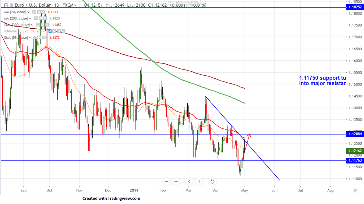 EURUSD is trading higher after Fed holds rates unchanged .it sticks with patient policy and has mentioned that economy has growth at faster pace in the first quarter. But inflation has weakened below 2% target despite solid labor market. It hits intraday high of 1.12647 and is currently trading around 1.12557.