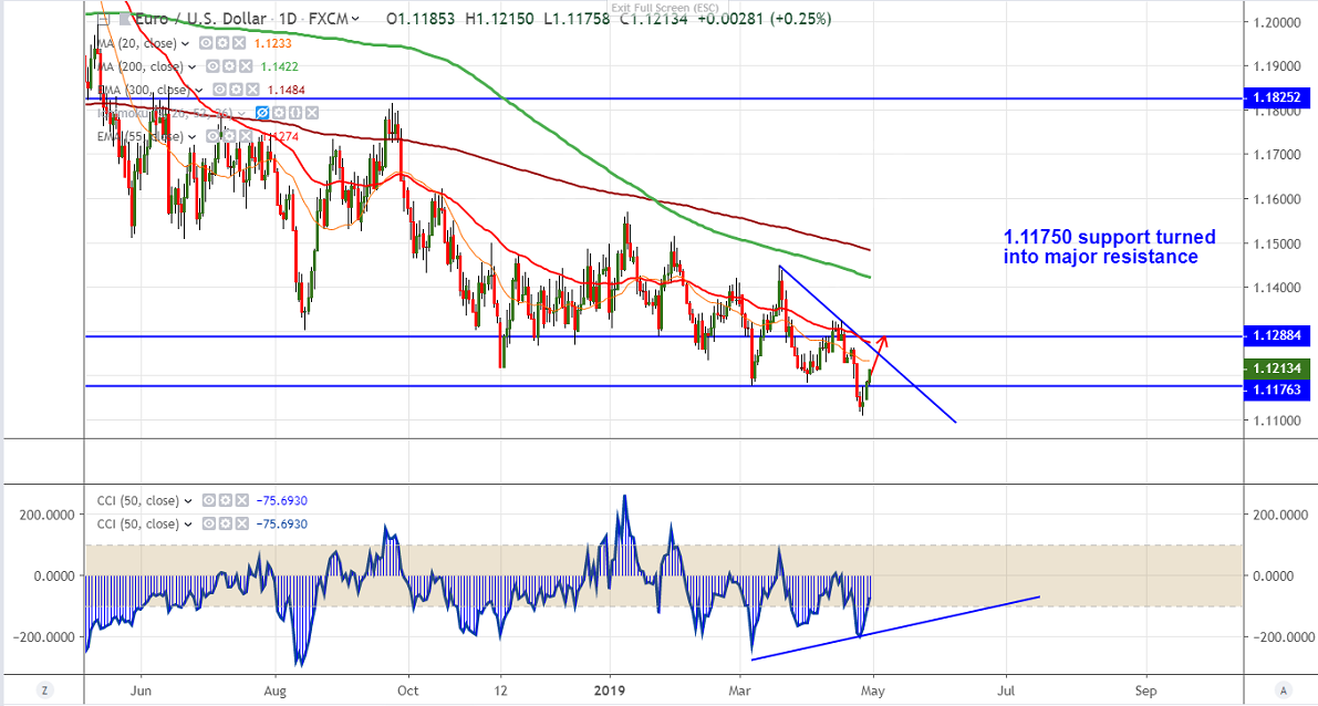On the higher side, near term resistance is around 1.1233 (20- day MA) and any violation above will take the pair to next level till 1.1260 (trend line resistance)/1.13240. Any break above 1.1360 targets 1.14200/1.14500.