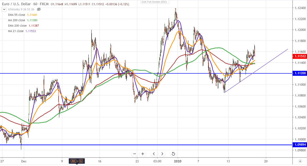 EURUSD has declined more than 20 pips till 1.11526 on upbeat US economic data. The retail sales climbed 0.3% last month in line with an estimate and the previous month was revised to 0.3%. Core retail sales m/m came at 0.7% Vs forecast 0.5% and Philly fed manufacturing index at 17 Vs 3.7. It is currently trading around 1.11558.