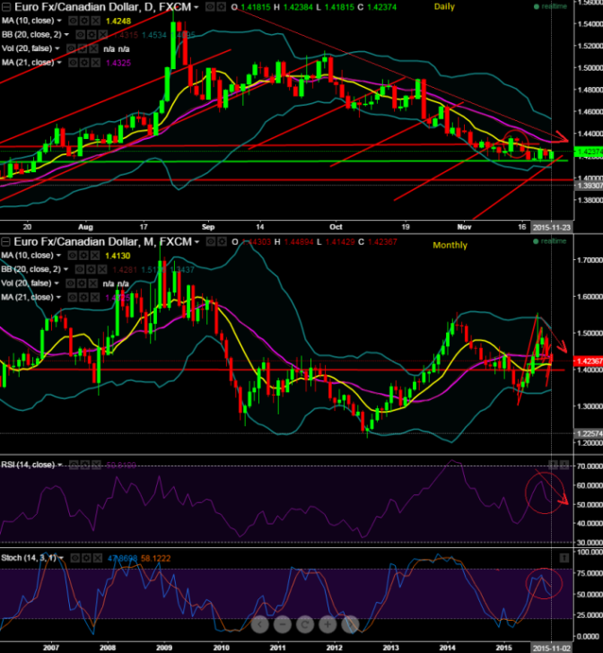We believe if it holds these levels then healthy bounce back may happen otherwise the declines until 1.3979 in near term and 1.3537 in long term is also possible (i.e. previous channel distance).