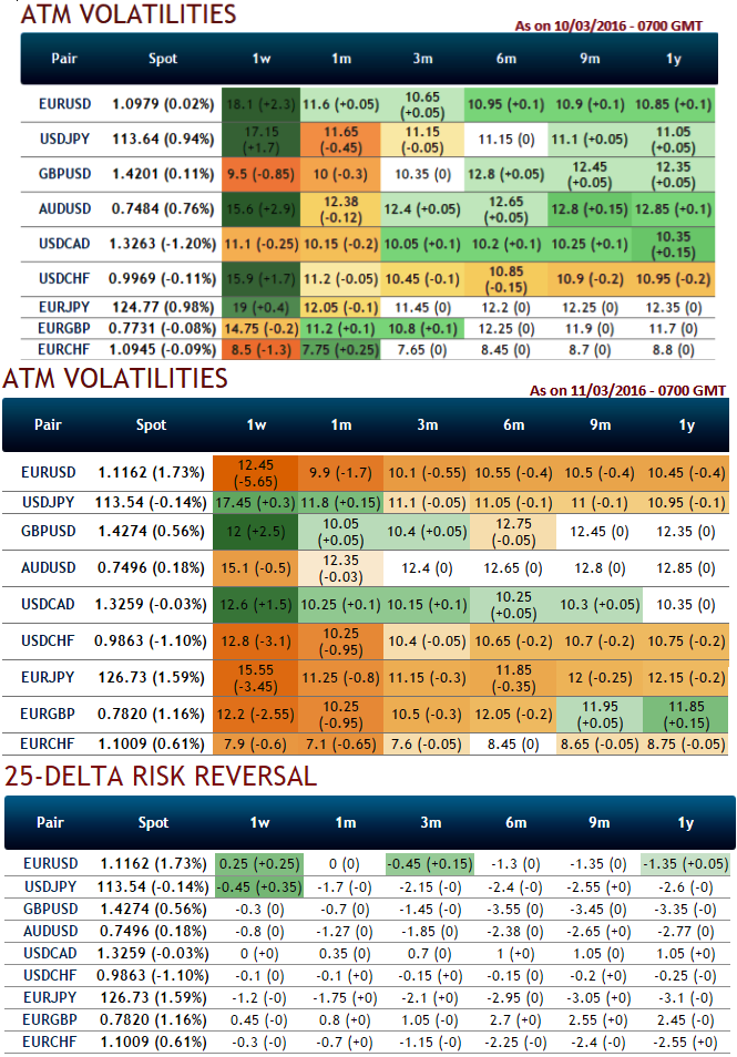 While delta risk reversals flashing up progressively with positive numbers that signify hedging arrangements for euro's upside risks over the period of time.