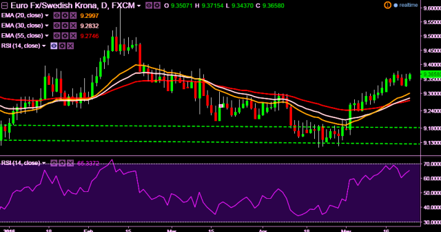We prefer to take long position in EUR/SEK only above 9.3664, stop loss 9.3513 and target 9.3781/ 9.3967 marks.
