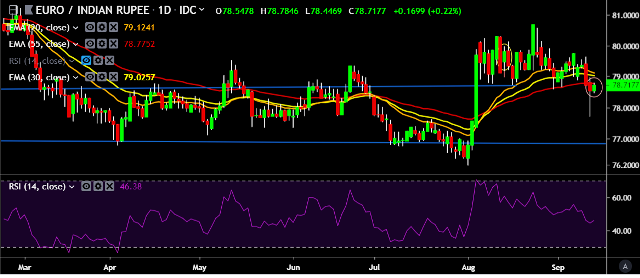 - EUR/INR is currently trading around 78.74 mark.