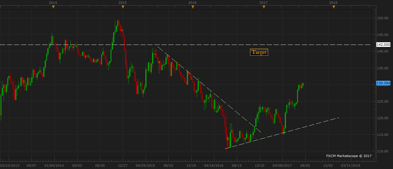 Back in July last year, in an article named, “FxWirePro: Yen may retrace to 130 per euro”, available at http://www.econotimes.com/FxWirePro-Yen-may-retrace-to-130-per-euro-235397, we suggested that yen may retrace to as low as 130 per euro from the then current rate of 116 per euro. However, at that time we had expected Bank of Japan (BoJ) to be more dovish and that to drive the pair. While BoJ has maintained its dovish stance, it is the diminishing political risk premium in Europe after the win of Emmanuel Macron in the French election and the change instance of the European Central Bank, have driven this pair to 130 per euro.