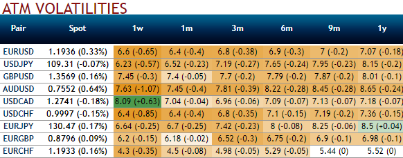 Most importantly, please be noted that the options writers are on upper hand, if you glance at the above nutshell evidencing IVs, EURCHF has been the pair to show the least IVs, while positively skewed IVs of 1m tenors are well balanced and risk is skewed on either side. So, both OTM puts as well as OTM calls will have equal opportunity for expiring in the money.