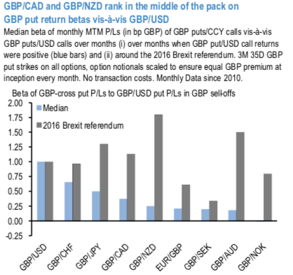 All considered, GBPNZD could be a left-field choice as a short GBP play, though we would certainly not recommend it as the first Brexit hedge in a portfolio before baseline GBPUSD structures have been put in place.